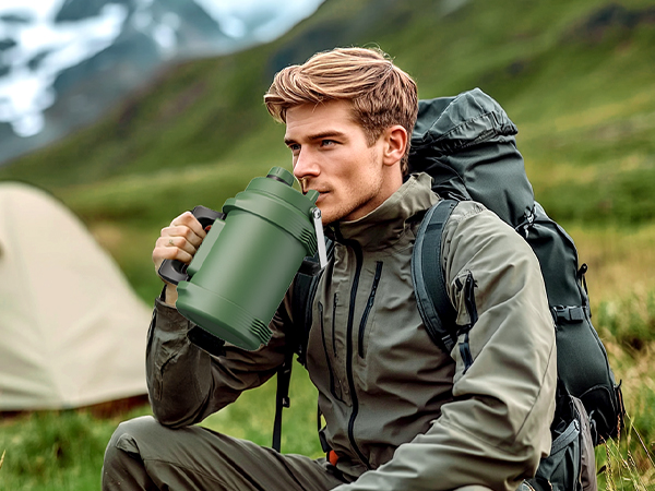 0.5 Gallon / 64 oz Insulated Water Jug with 2-in-1 Lid and Dual Handle